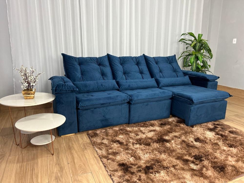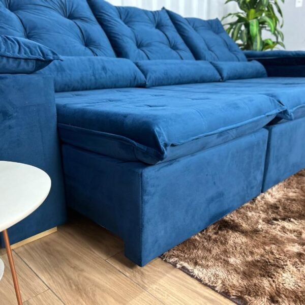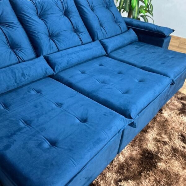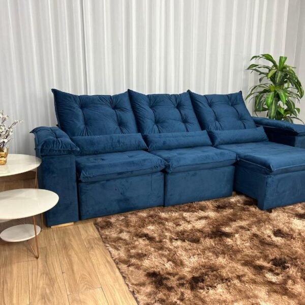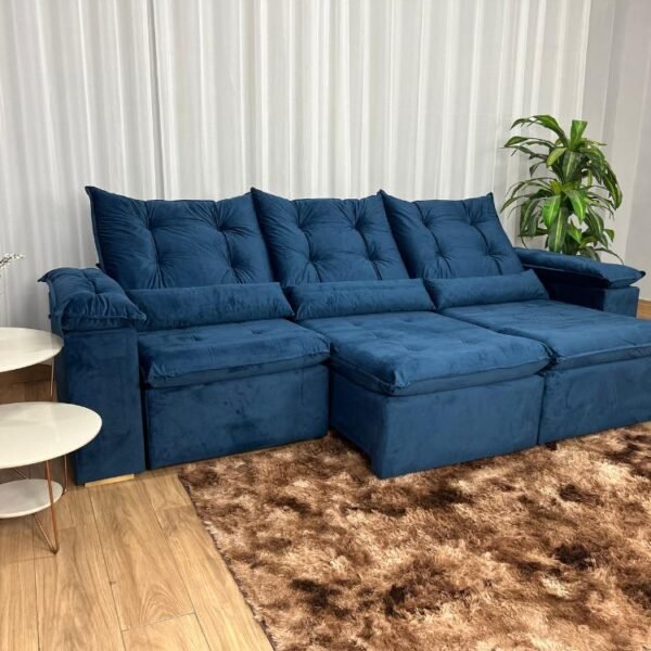 Sofá Retrátil Reclinável Atenas 2.70m – Azul Veludo