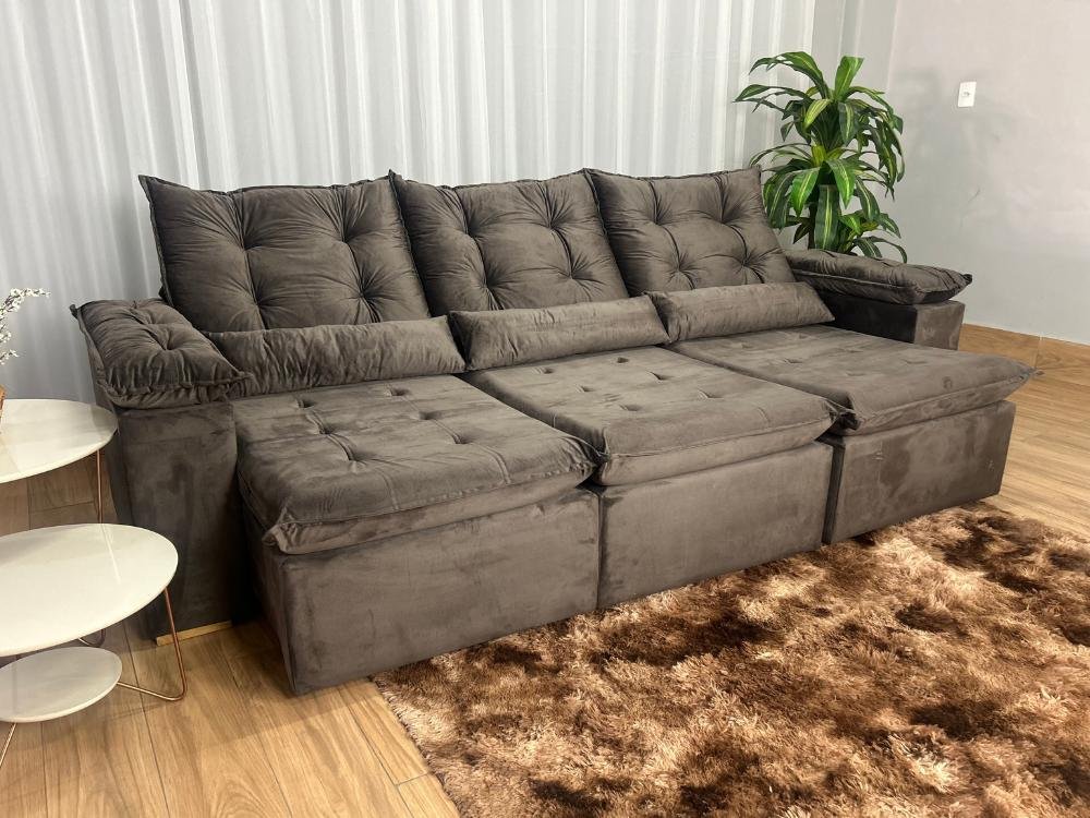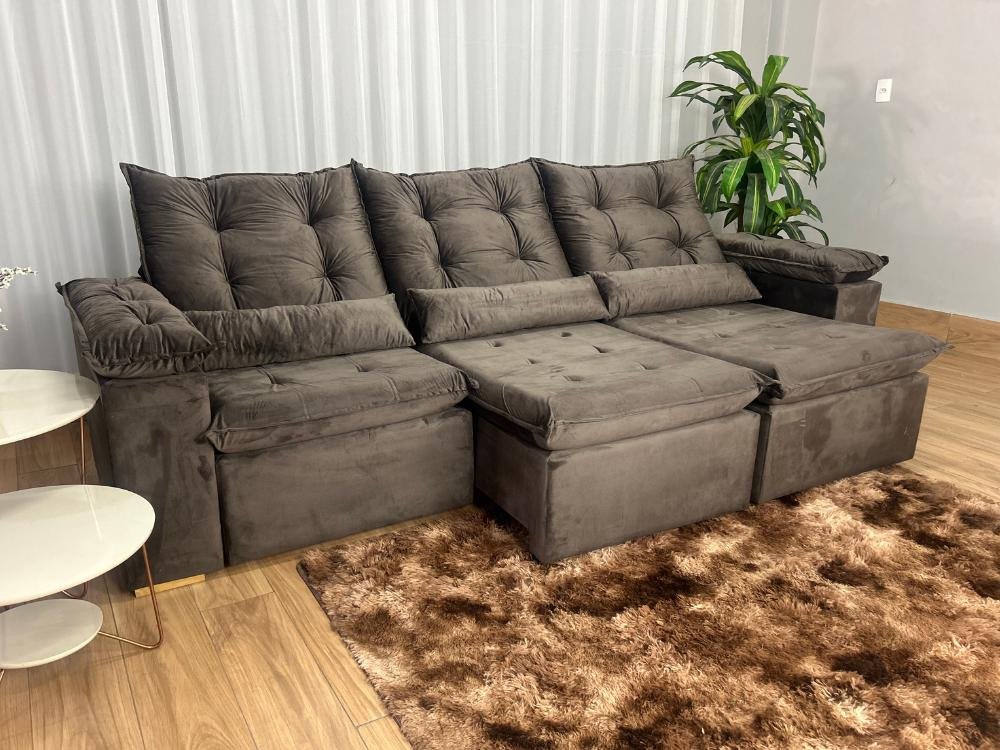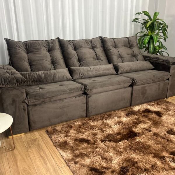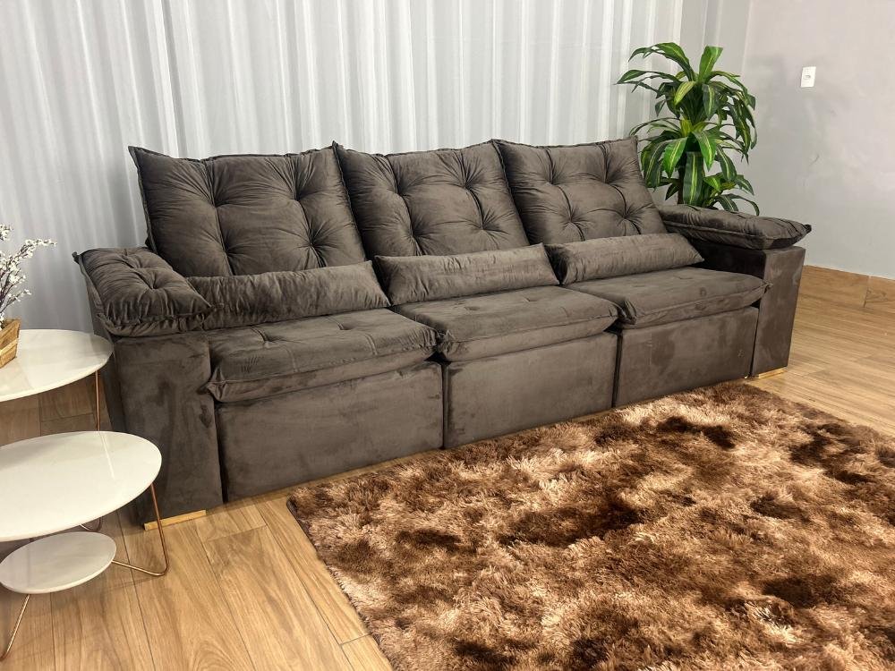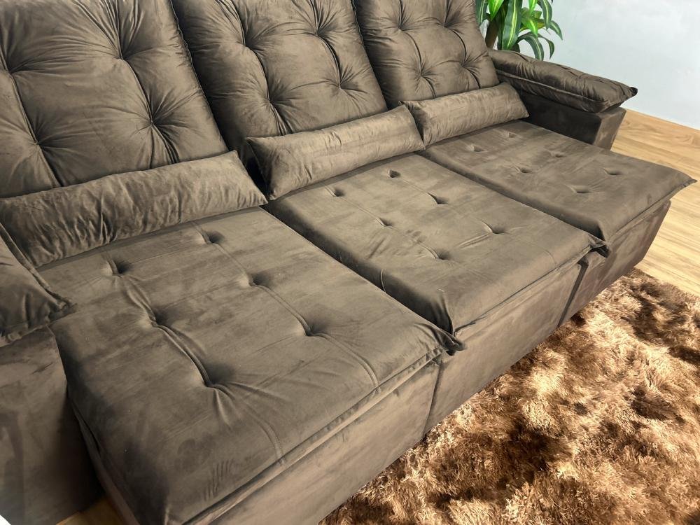 Sofá Retrátil Reclinável Atenas 2.70m – Marrom Veludo
