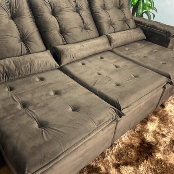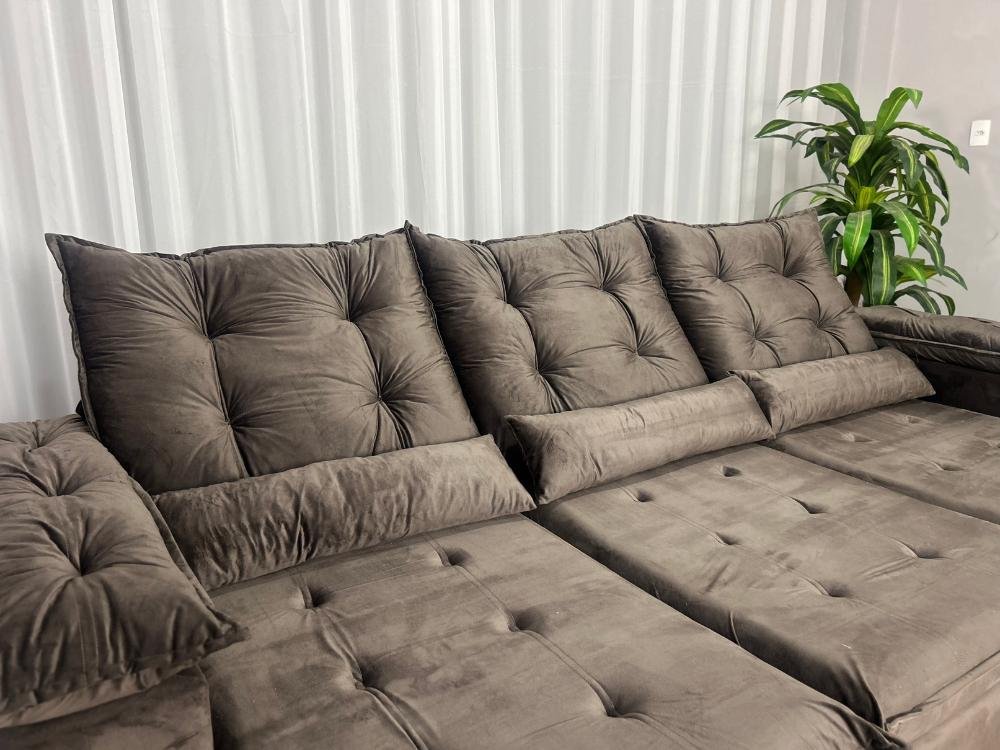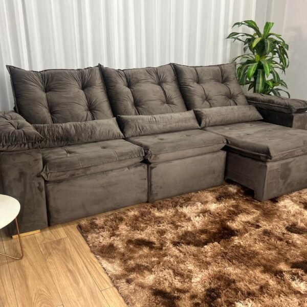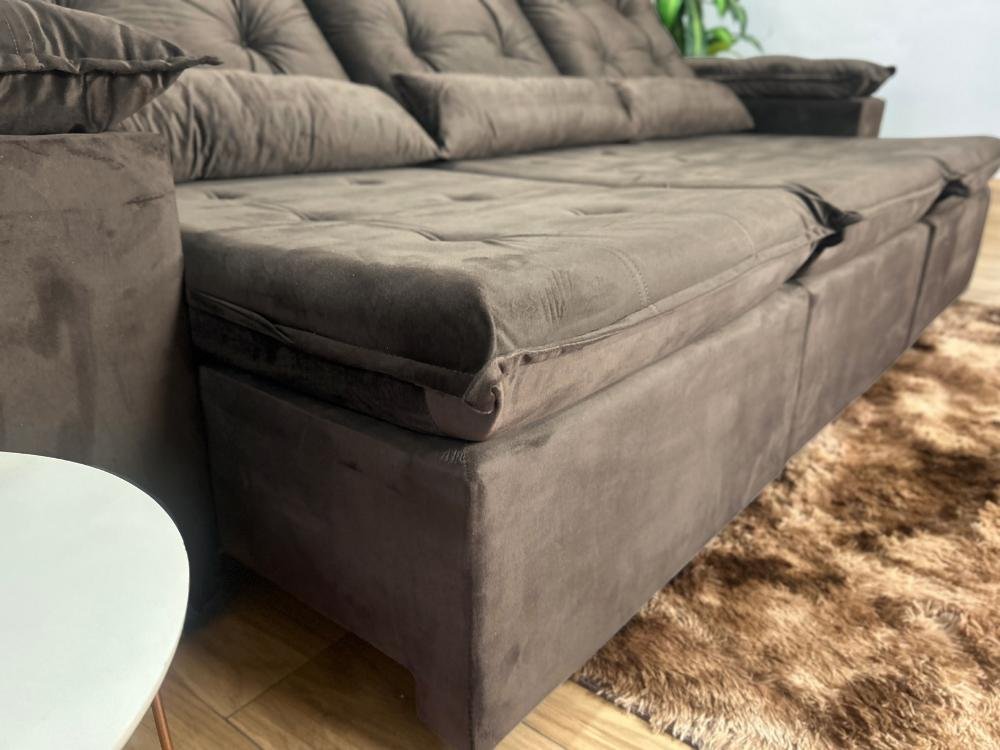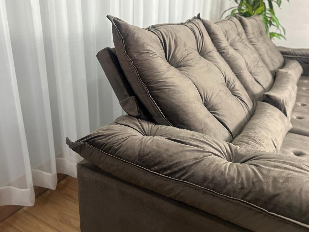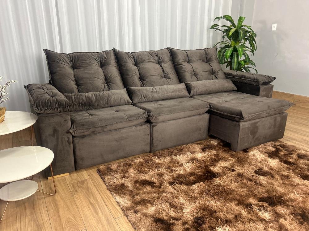 Sofá Retrátil Reclinável Atenas 2.70m – Marrom Veludo