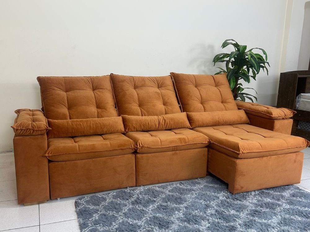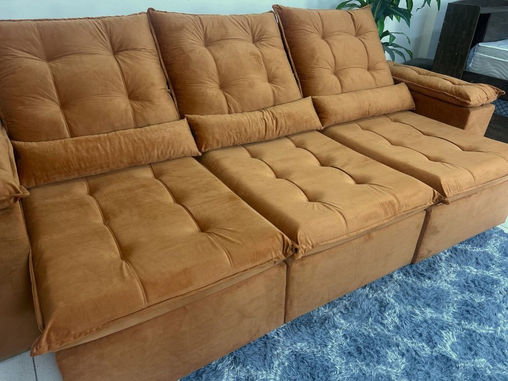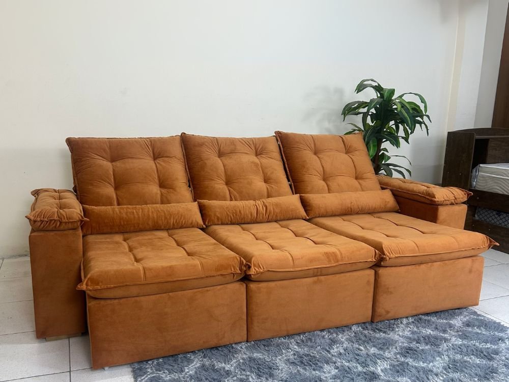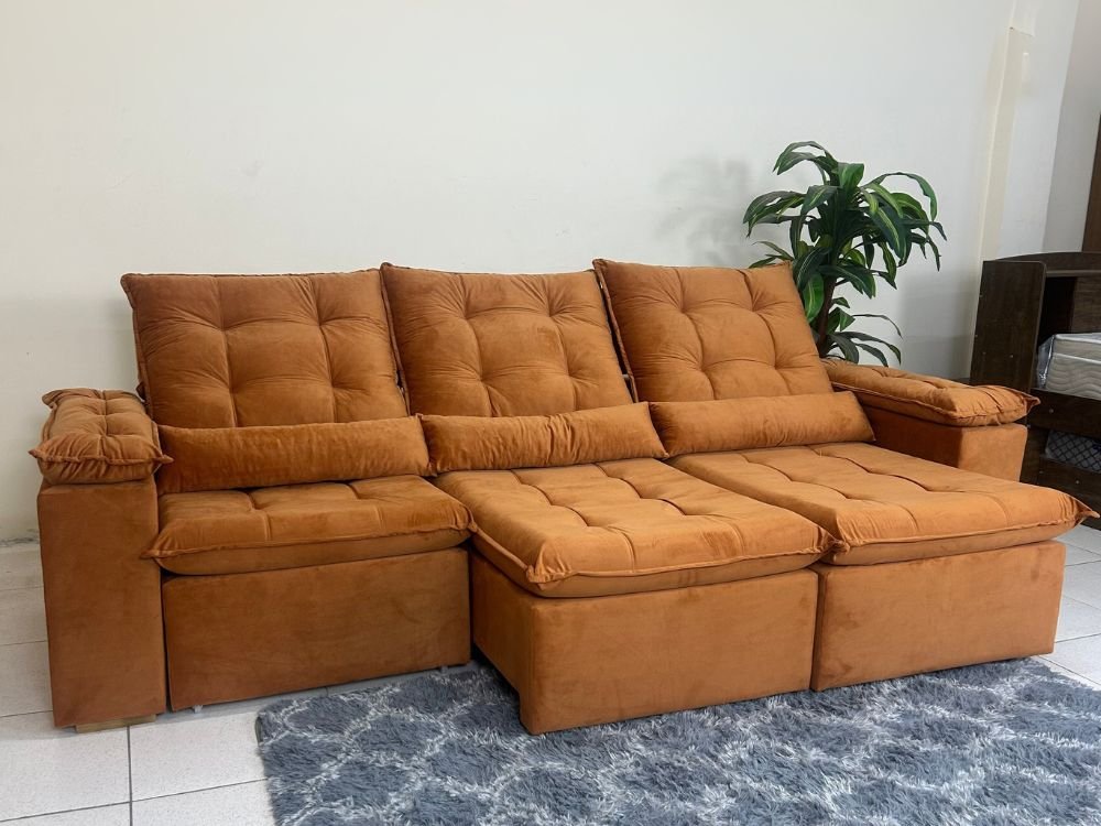 Sofá Retrátil Reclinável Atenas 2.70m – Terracota Veludo