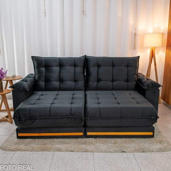 3{%%}Descrição#Benéficos das molas ensacadas{%%}Sofá Retrátil Reclinável Barcelona 2.30m Veludo Preto 322 – D33 e Molas Ensacadas