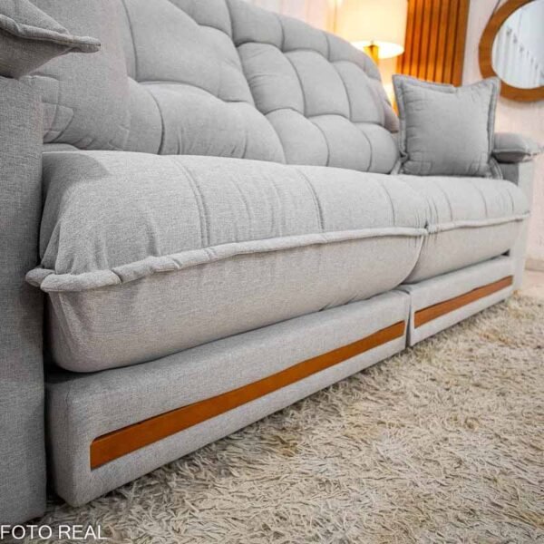 3{%%}Descrição{%%}Sofá Retrátil Reclinável Barcelona 2.50m Linho Cinza Claro 461 C/ 2 Almofadas – D28 e Molas Ensacadas Pocket
