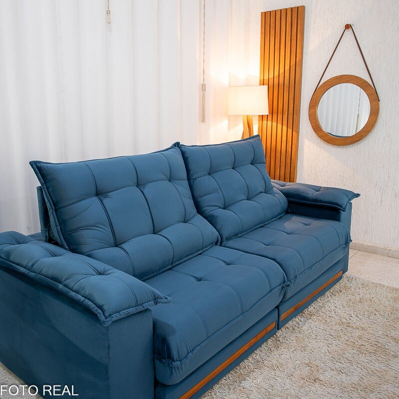 3{%%}Descrição#Benéficos das molas ensacadas{%%}Sofá Retrátil Reclinável Barcelona 2.50m Veludo Azul 325 – D33 e Molas Ensacadas