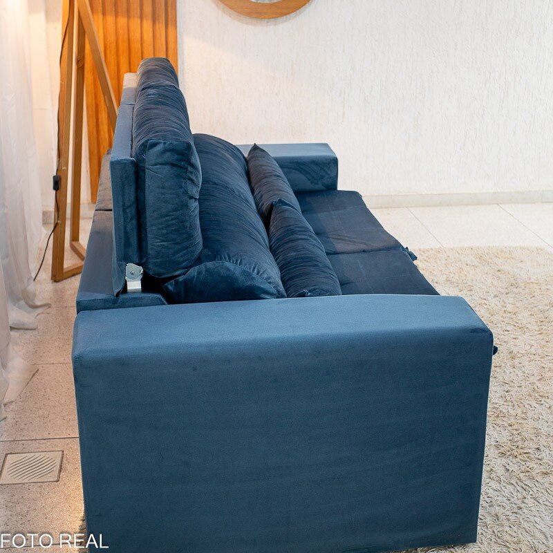 3{%%}Descrição{%%}Sofá Retrátil Reclinável Bia 1.95m Veludo Azul – D28