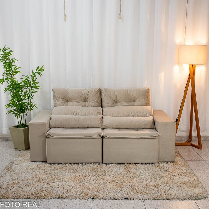 3{%%}Descrição{%%}Sofá Retrátil Reclinável Bia 1.95m Veludo Bege – D28