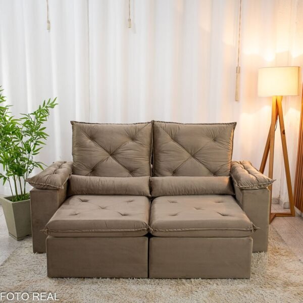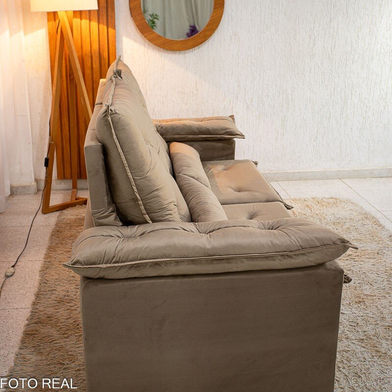 3{%%}Descrição{%%}Sofá Retrátil Reclinável City 1.95m Veludo Bege – D28