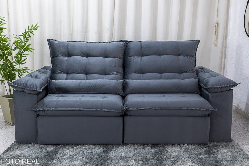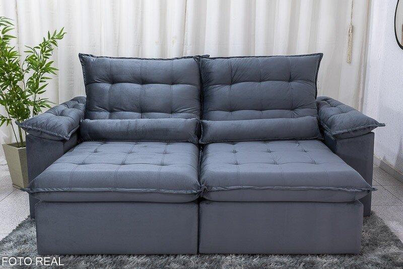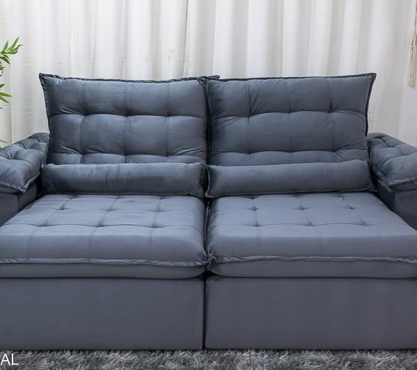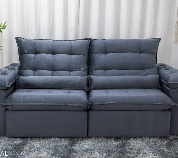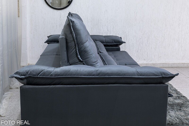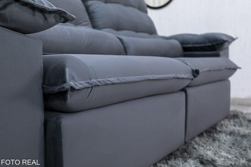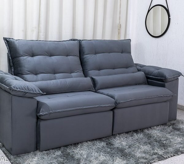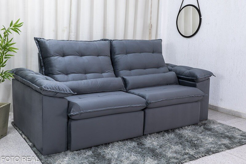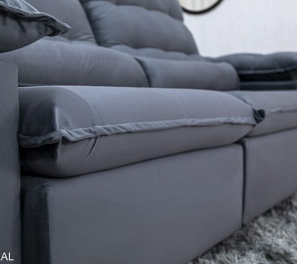 3{%%}Descrição#Vídeo{%%}Sofá Retrátil Reclinável Emanuelly 2.00m Veludo Cinza 20 – D28 Soft