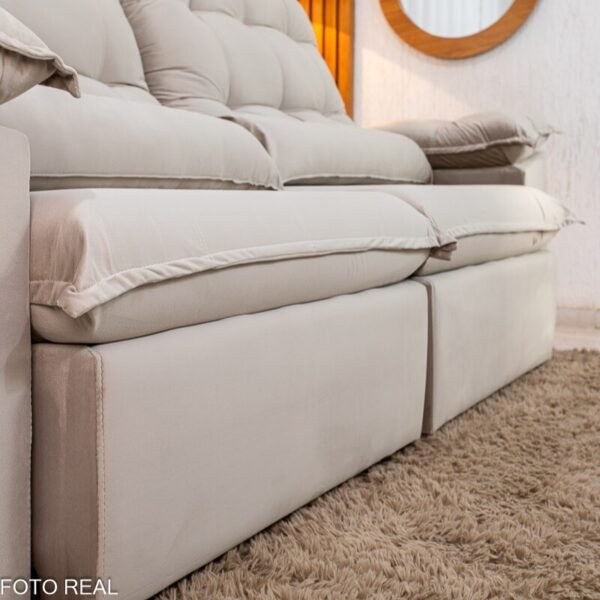 Informamos que é normal haver uma abertura entre os módulos dos sofás retráteis. Essa abertura é necessária para evitar atrito entre os módulos durante o movimento de abrir e fechar, prevenindo o desgaste do tecido.