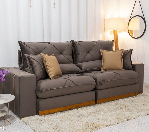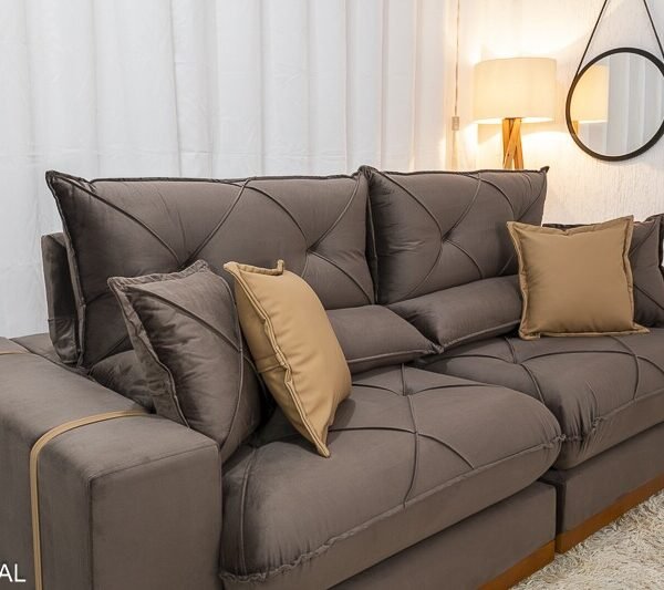 3{%%}Descrição#Benefícios das molas ensacadas{%%}Sofá Retrátil Reclinável Gran Bello 2.30m Veludo Marrom 19 – Molas Ensacadas Pocket