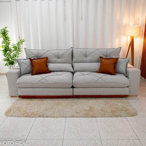 O Sofá Gran Bello foi pensado para quem valoriza o melhor em conforto, espaço e design. Com impressionantes 2,90m de largura, é perfeito para acomodar até 6 pessoas com conforto, sendo ideal para salas amplas ou ambientes que recebem muitas visitas. Mesmo assim, passa em portas de 75cm, facilitando a instalação.