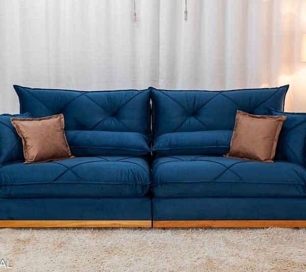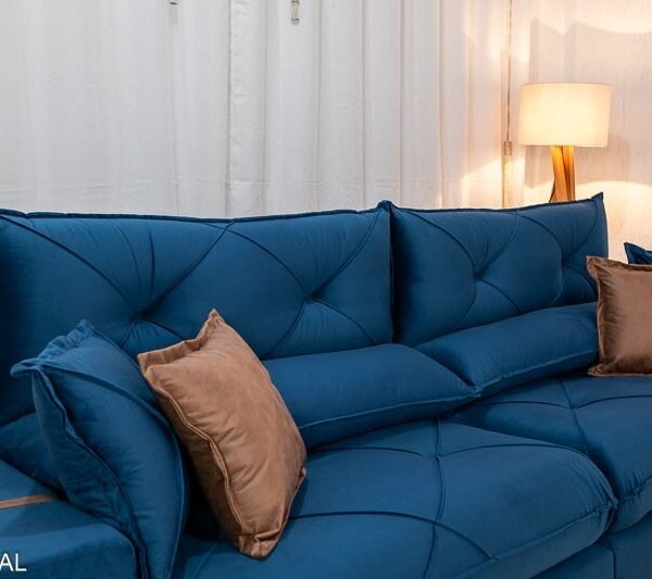 3{%%}Descrição#Benéficos das molas ensacadas{%%}Sofá Retrátil Reclinável Gran Bello 2.90m Veludo Azul – Molas Ensacadas Pocket