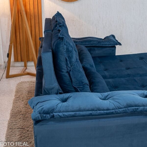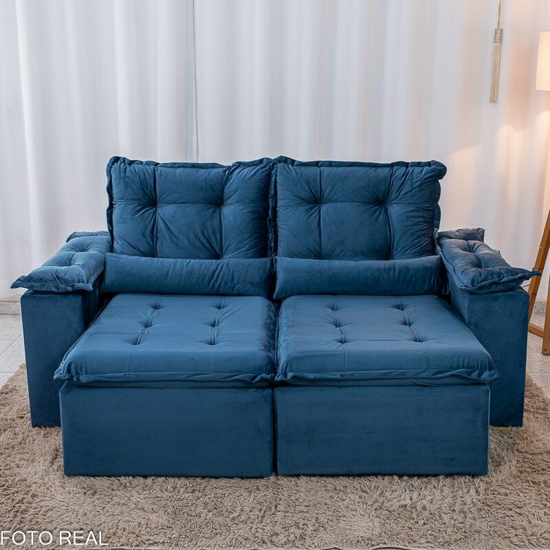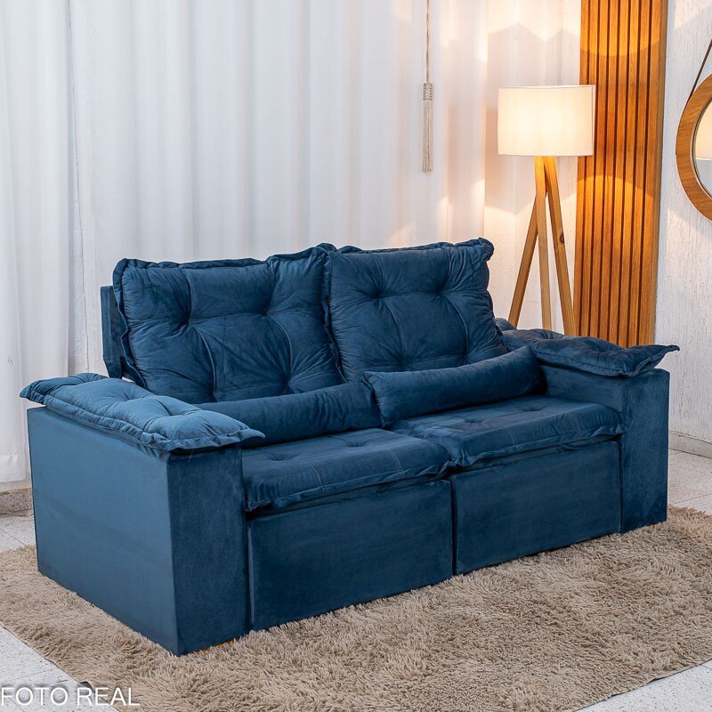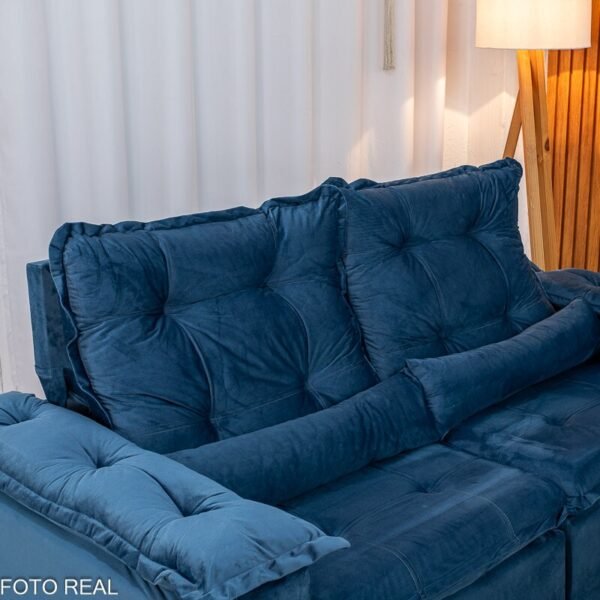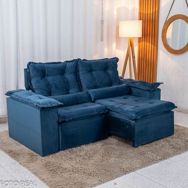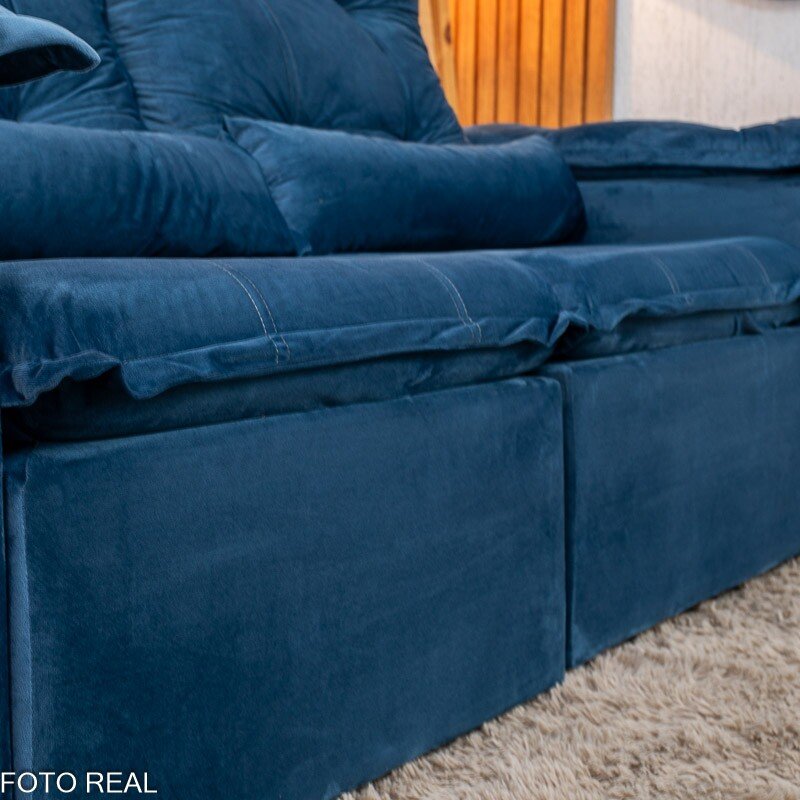 3{%%}Descrição{%%}Sofá Retrátil Reclinável Grécia 2.00m Veludo Azul – Sem caixa