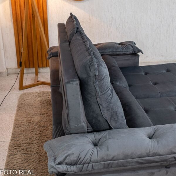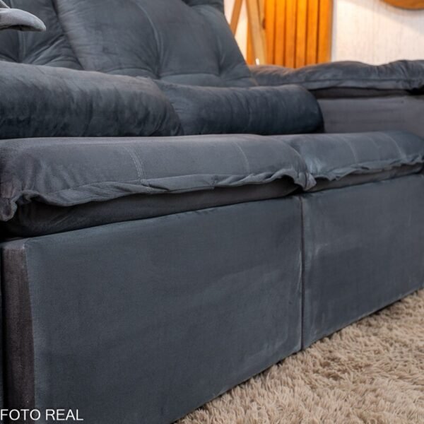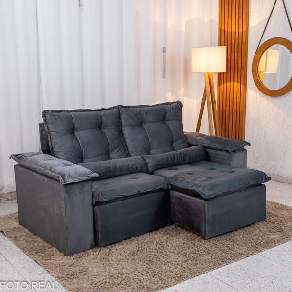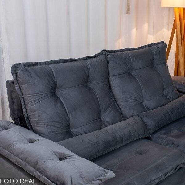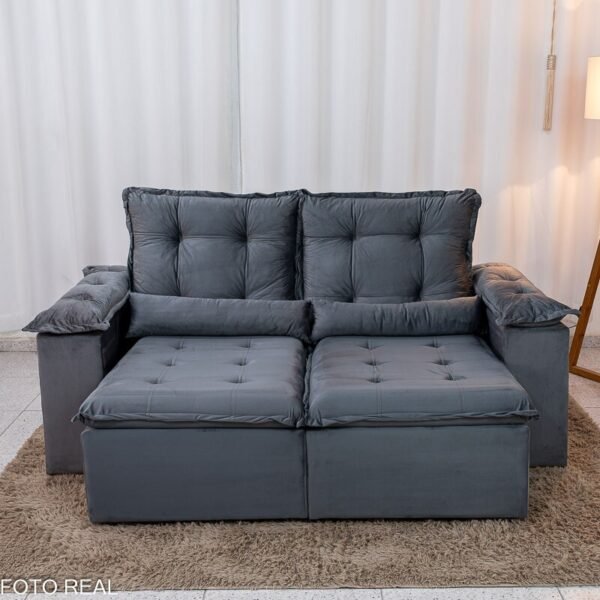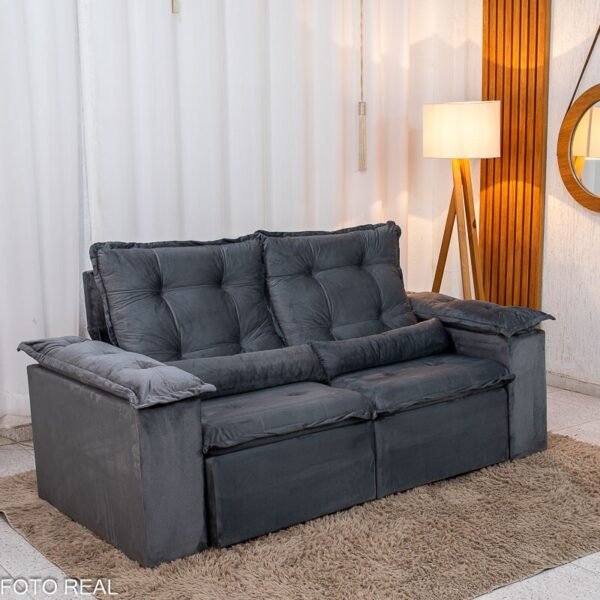 3{%%}Descrição{%%}Sofá Retrátil Reclinável Grécia 2.00m Veludo Cinza – Sem Caixa