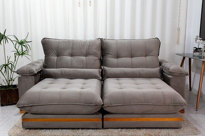 Atenção: Informamos que é normal haver uma abertura entre os módulos dos sofás retráteis. Essa abertura é necessária para evitar atrito entre os módulos durante o movimento de abrir e fechar, prevenindo o desgaste do tecido.