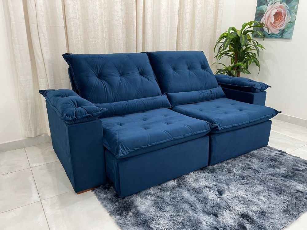 Sofá Retrátil e Reclinável Las Vegas 2.30m – Azul Veludão