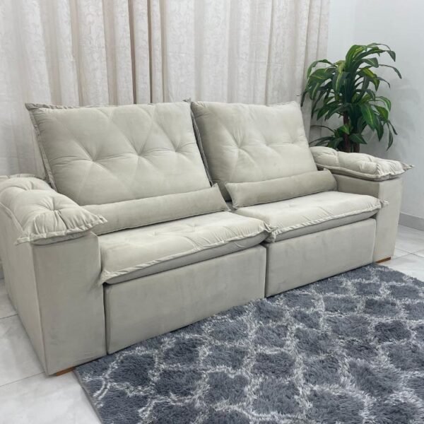 Sofá Retrátil Reclinável Las Vegas 2.30m – Bege Veludão