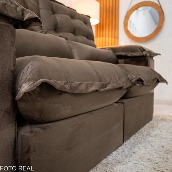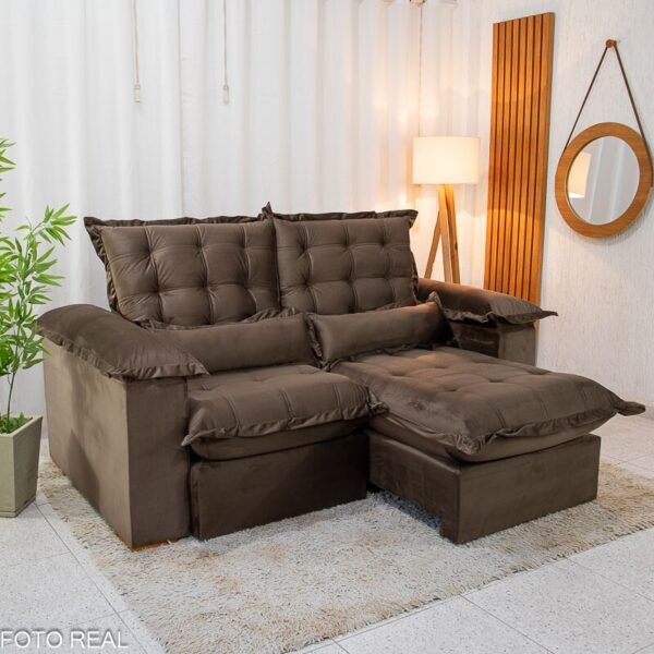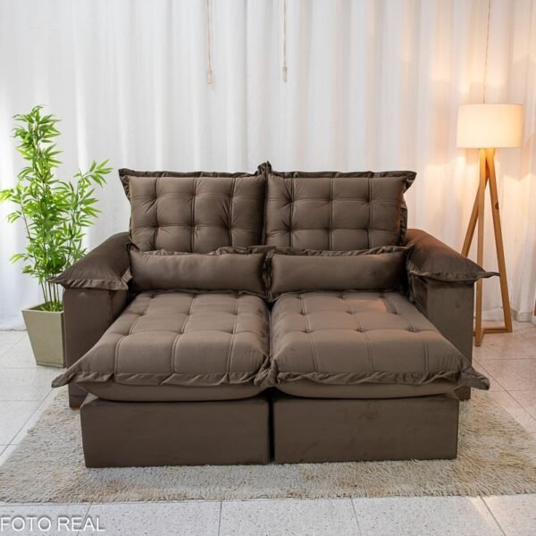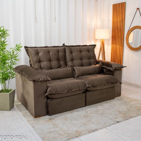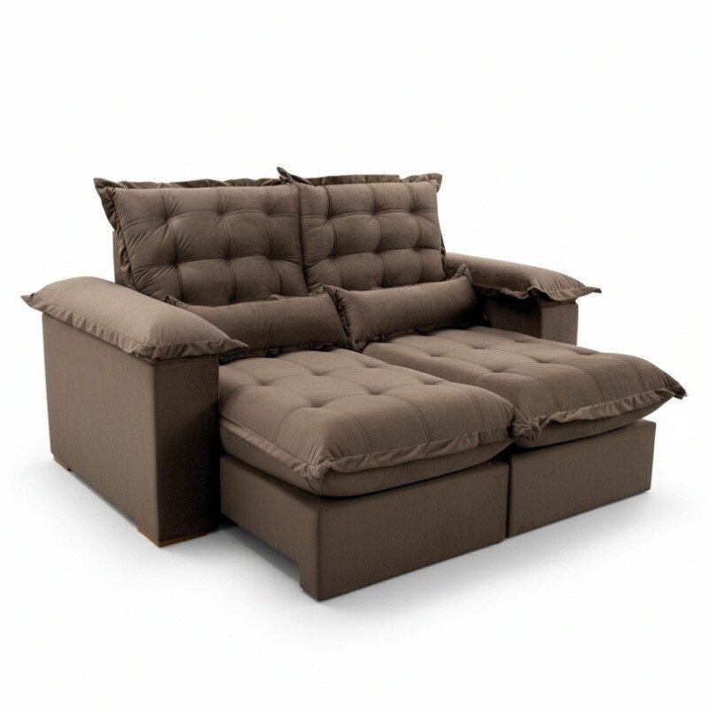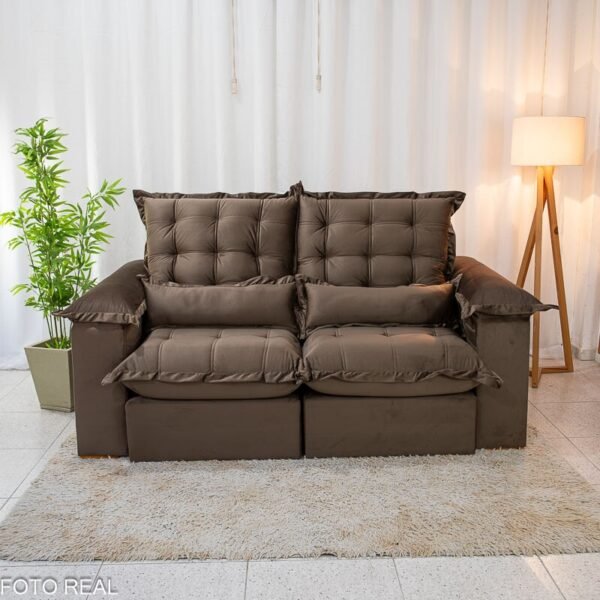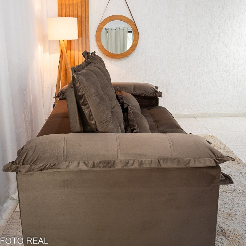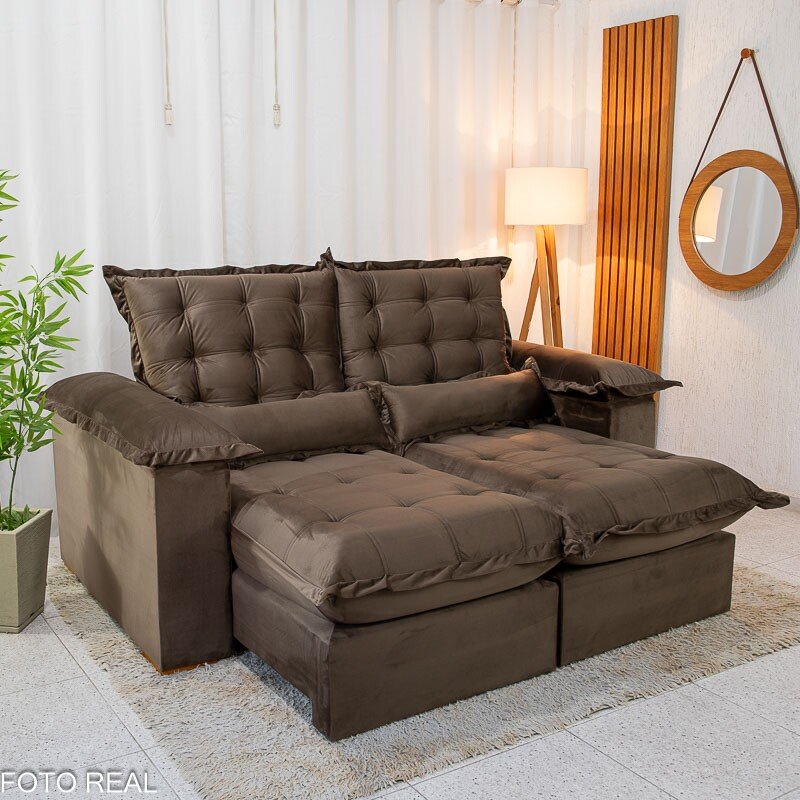 3{%%}Descrição{%%}Sofá Retrátil Reclinável Maldivas 2.10m Veludo Marrom A17 – D28 Pró Aditivada