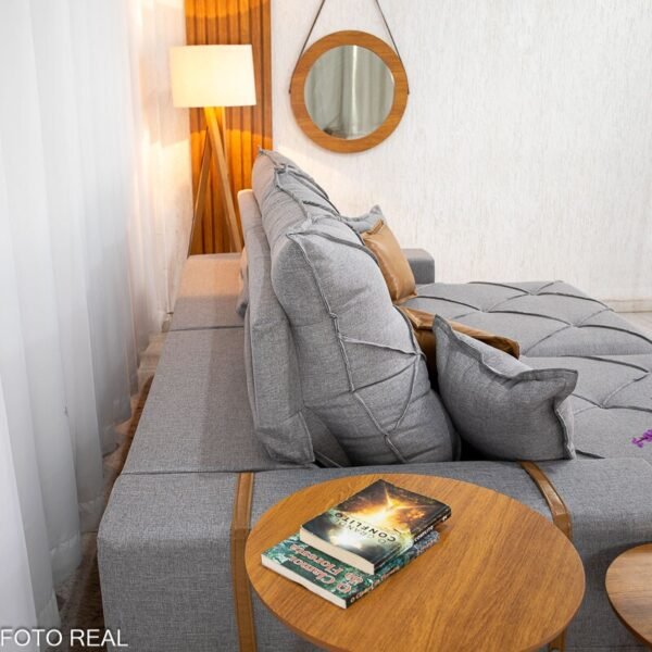Informamos que é normal haver uma abertura entre os módulos dos sofás retráteis. Essa abertura é necessária para evitar atrito entre os módulos durante o movimento de abrir e fechar, prevenindo o desgaste do tecido.