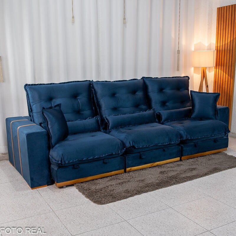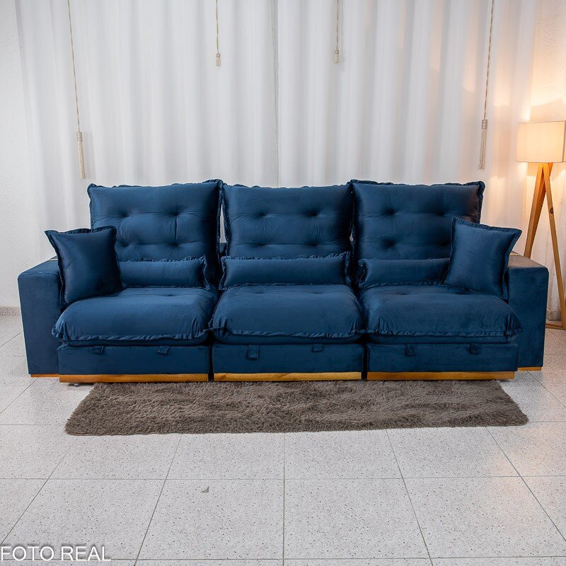 3{%%}Descrição#Benefícios das molas ensacadas{%%}Sofá Retrátil Reclinável Mônaco 3.20m Veludo Azul A16 – Molas Ensacadas