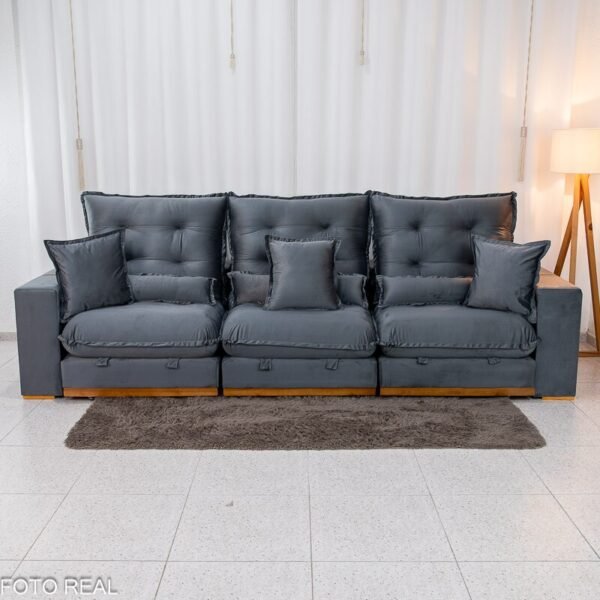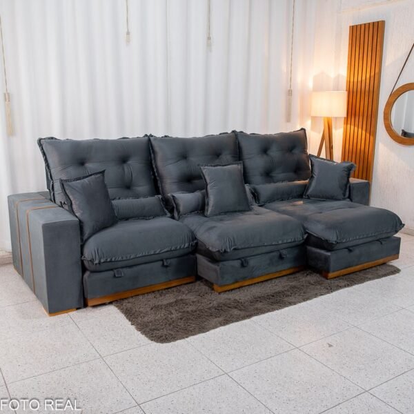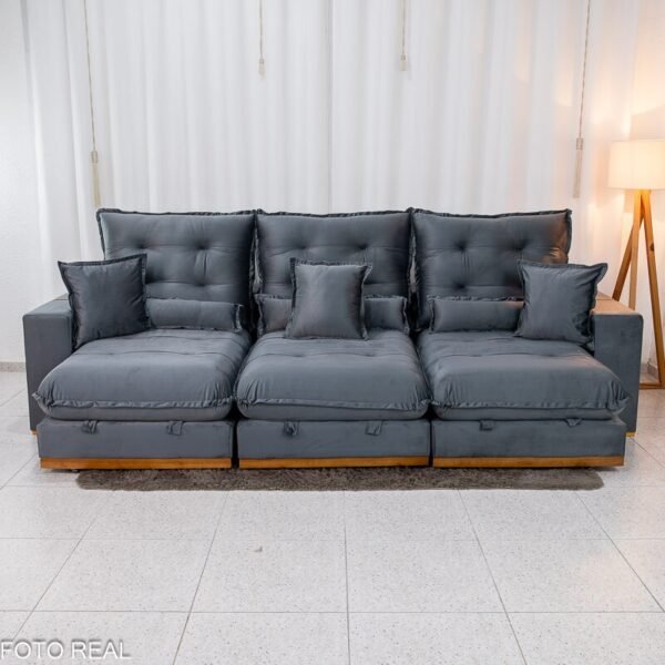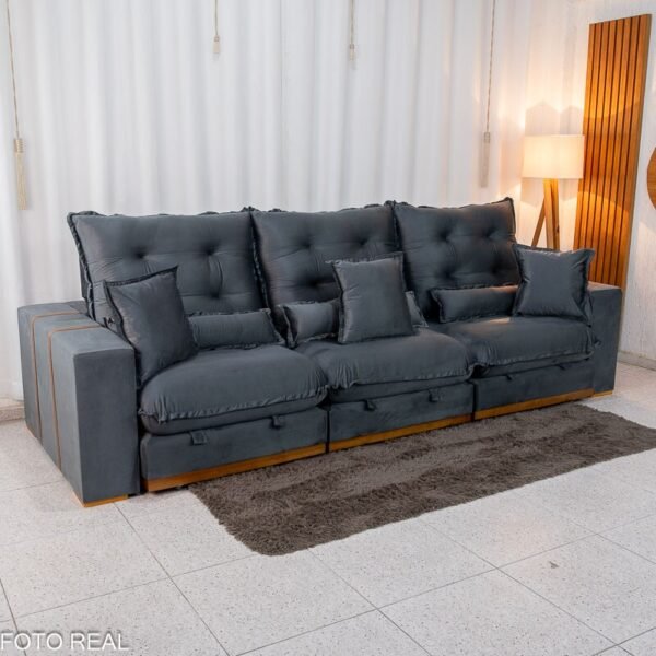 3{%%}Descrição#Benefícios das molas ensacadas{%%}Sofá Retrátil Reclinável Mônaco 3.20m Veludo Cinza A15 – Molas Ensacadas