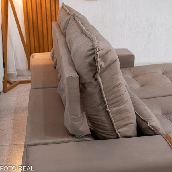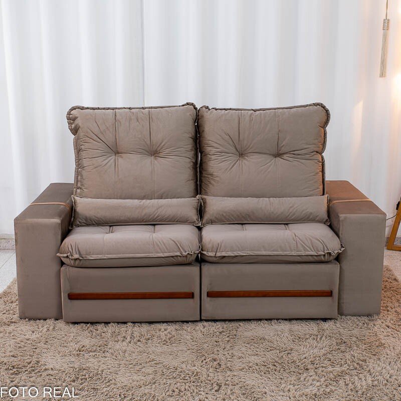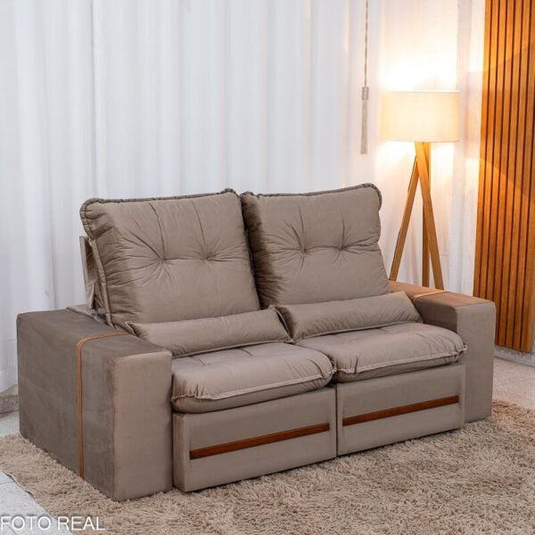3{%%}Descrição{%%}Sofá Retrátil Reclinável Montreal 1.90m Veludo Bege – D33