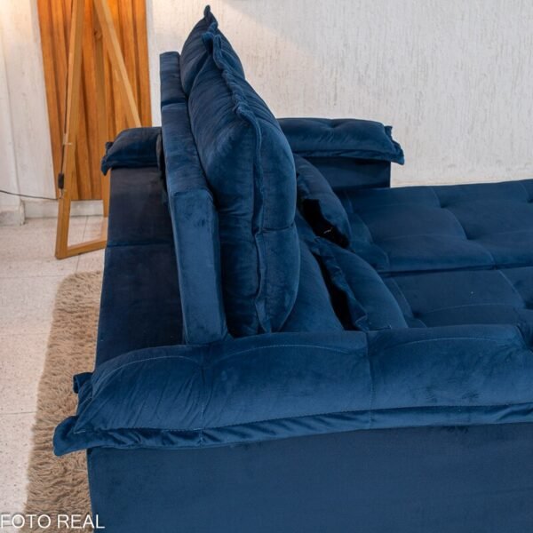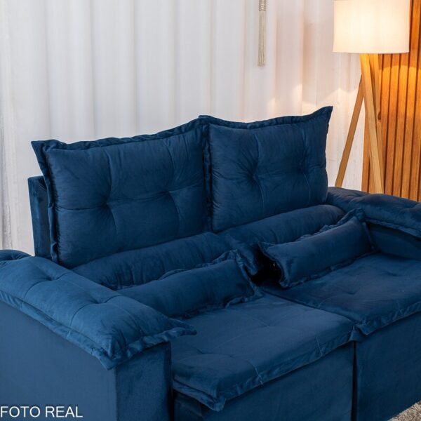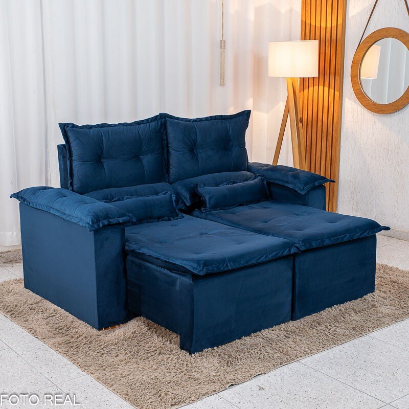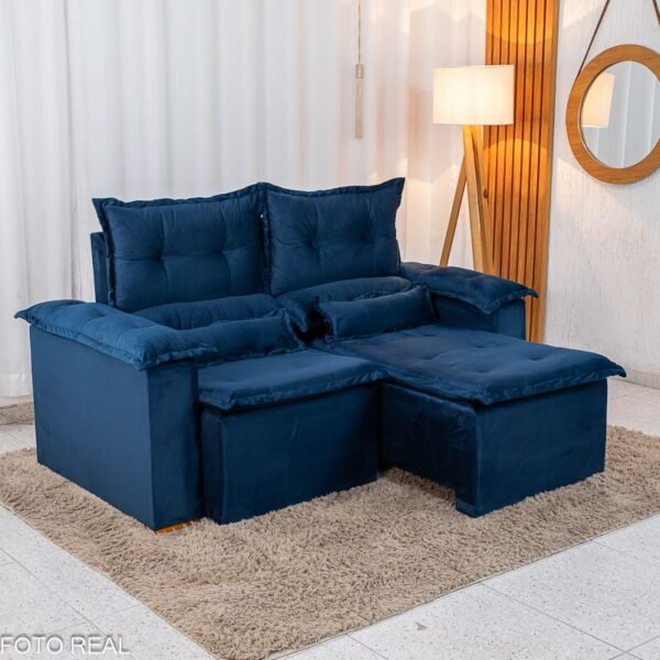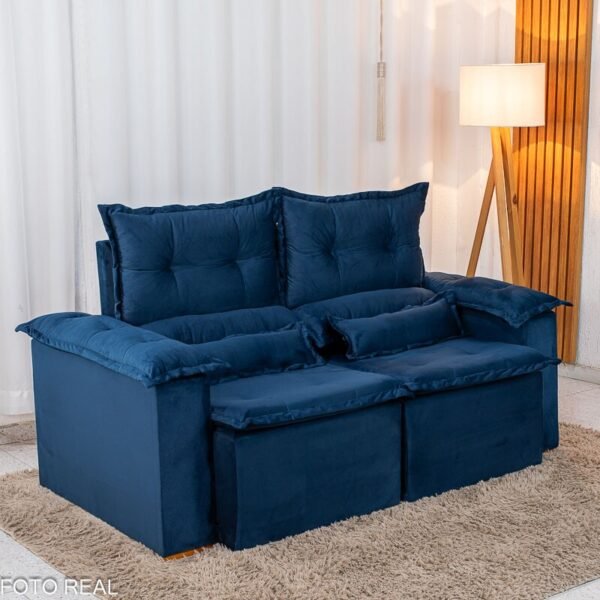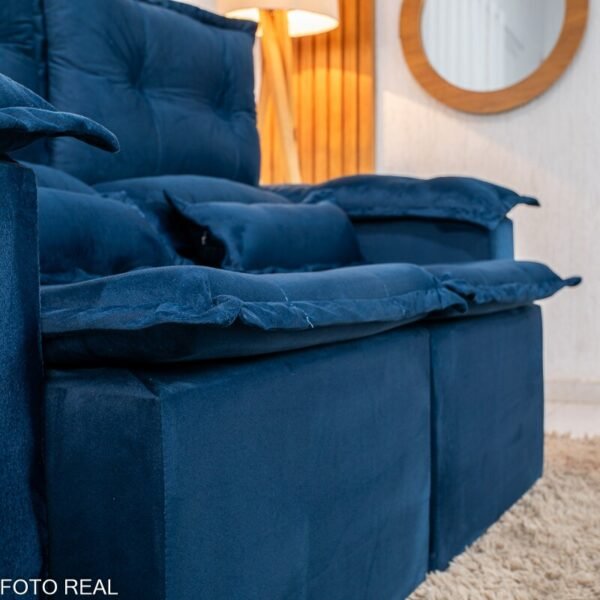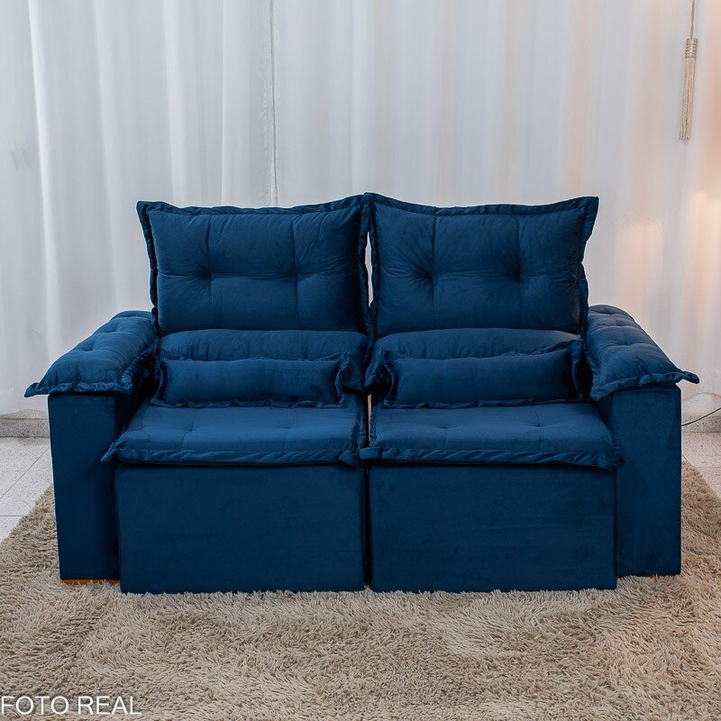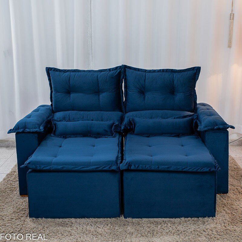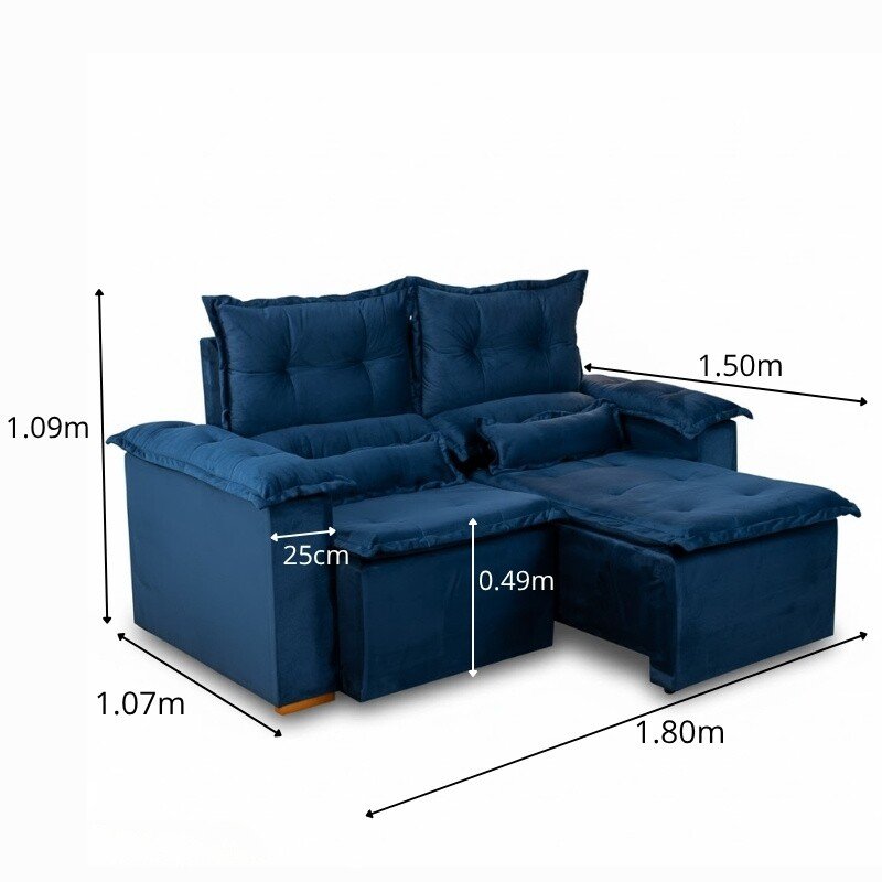 3{%%}Descrição{%%}Sofá Retrátil e Reclinável Nicole 1.80m Veludo Azul A16