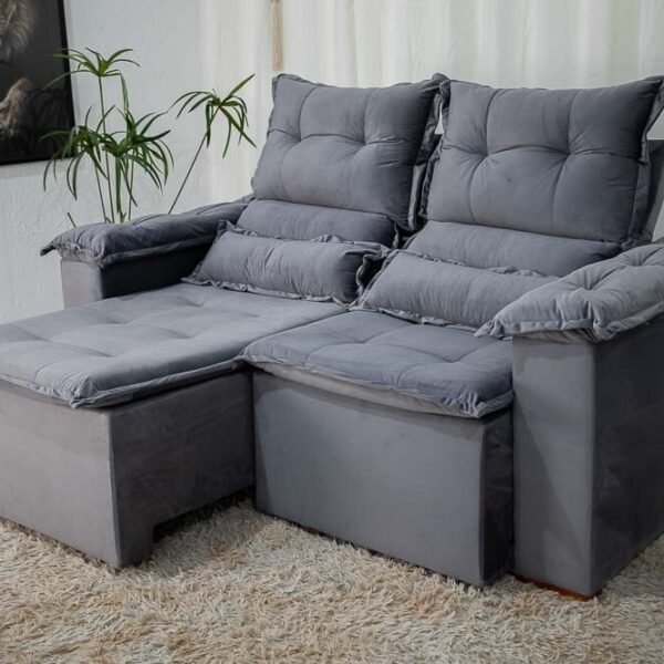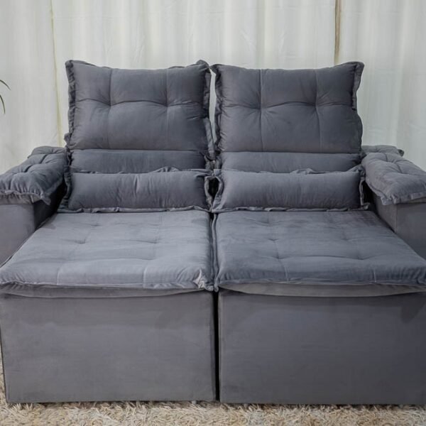 3{%%}Descrição{%%}Sofá Retrátil Reclinável Nicole 1.80m Veludo Grafite A15