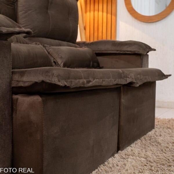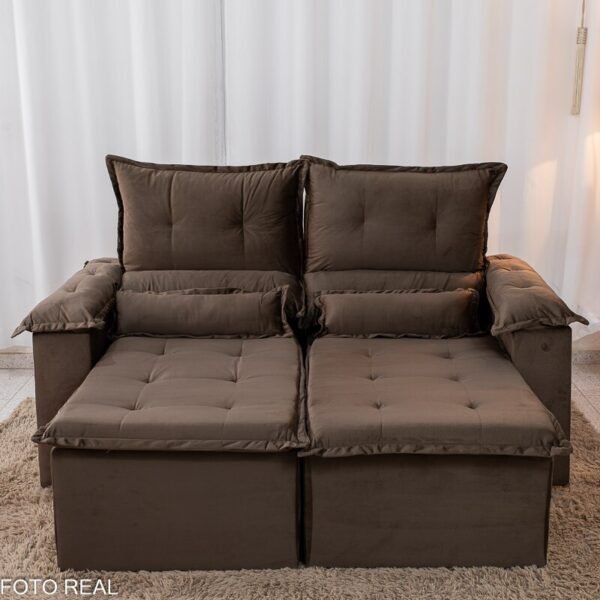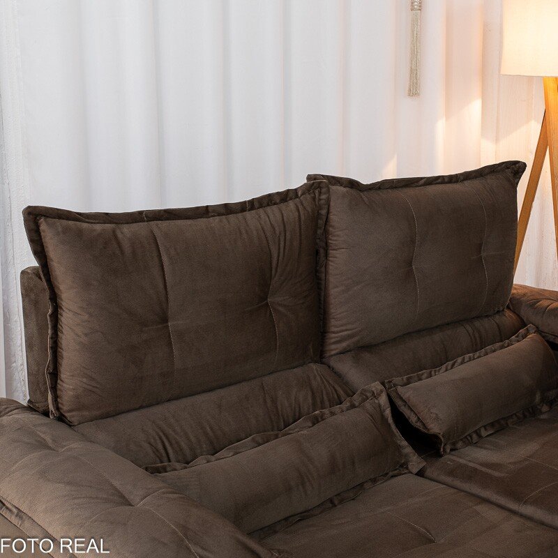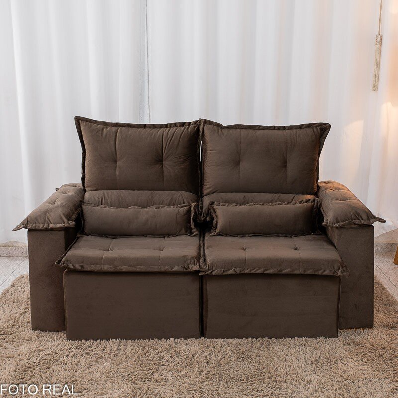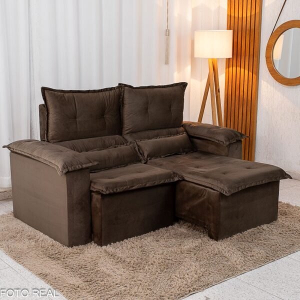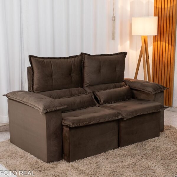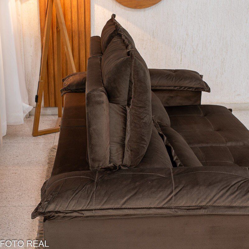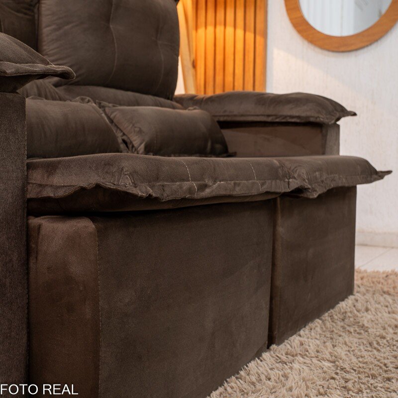 3{%%}Descrição{%%}Sofá Retrátil Reclinável Nicole 1.80m Veludo Marrom A17