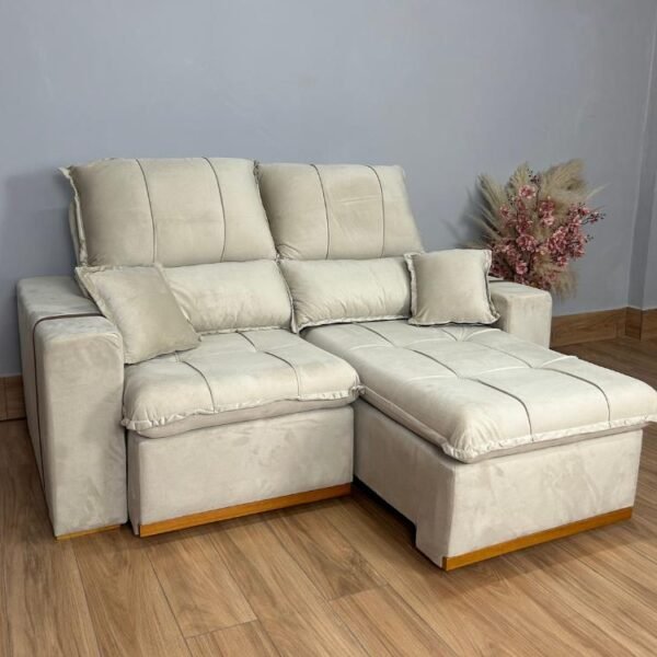 Um sofá retrátil indicado para pessoas com até 100kg.
