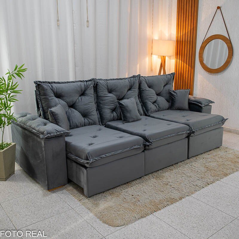 3{%%}Descrição{%%}O Sofá Retrátil Reclinável Porto Madri é a combinação perfeita entre design moderno e funcionalidade. Com 2.70 metros de largura, ele acomoda com conforto e ainda passa em portas de 70cm, facilitando na hora da entrega ou mudanças. Seu revestimento em veludo cinza de toque super macio traz um charme especial ao ambiente e combina com diversos estilos de decoração.