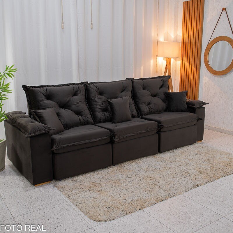 3{%%}Descrição{%%}O Sofá Retrátil Reclinável Porto Madri é a combinação perfeita entre design moderno e funcionalidade. Com 2.70 metros de largura, ele acomoda com conforto e ainda passa em portas de 70cm, facilitando na hora da entrega ou mudanças. Seu revestimento em veludo marrom escuro de toque super macio traz um charme especial ao ambiente e combina com diversos estilos de decoração.