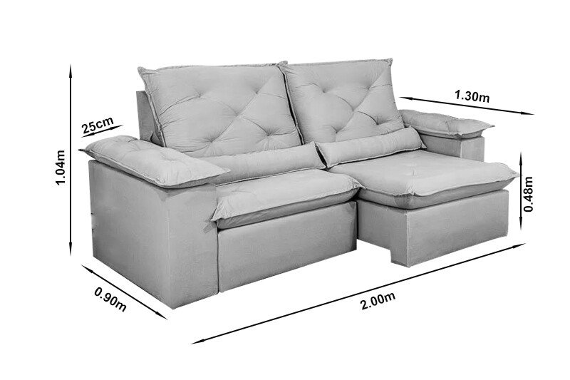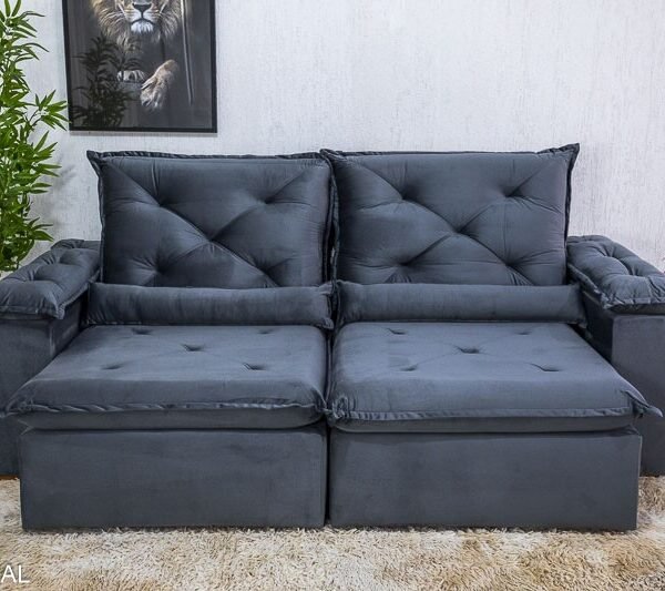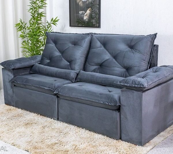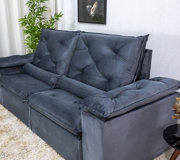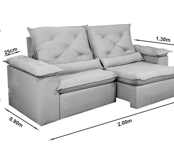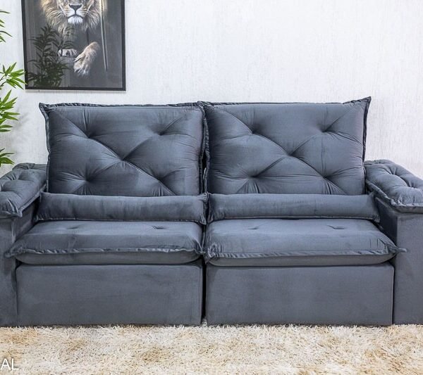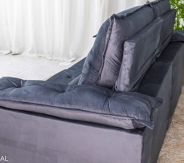 3{%%}Descrição{%%}Sofá Retrátil Reclinável Roma 2.00m Veludo Cinza 20 – D28 Soft