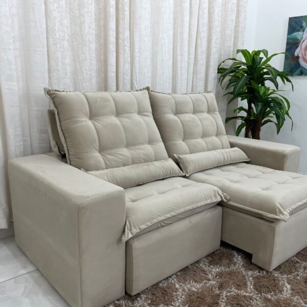 Sofá Retrátil Reclinável Small 2.00m – Bege Veludão