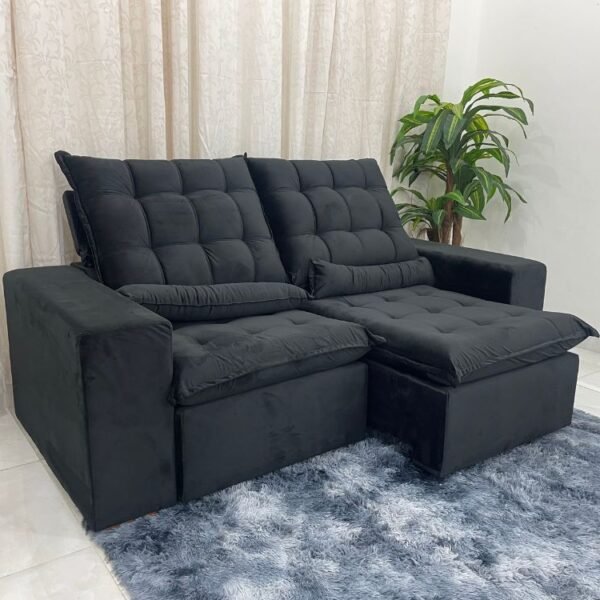 Sofá Retrátil Reclinável Small 2.00m – Preto Veludão