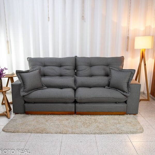 3{%%}Descrição{%%}Sofá Retrátil Reclinável Toronto 2.50m Linho Grafite 2008 – Molas Ensacadas
