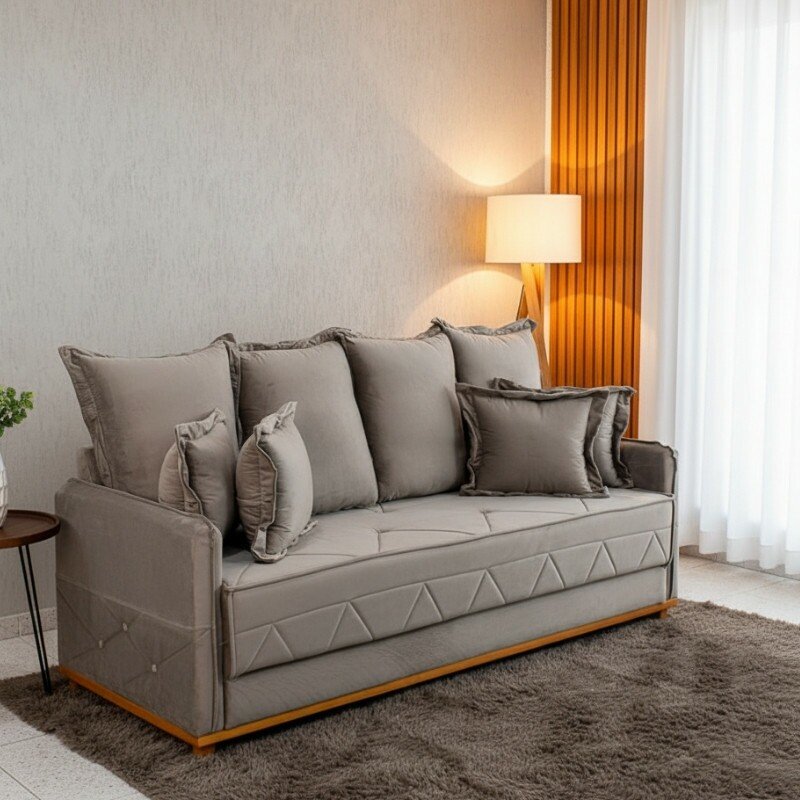 3{%%}Descrição{%%}Sofá Vican Larg. 2.00m Veludo Capuccino 5003 – Molas Bonnel