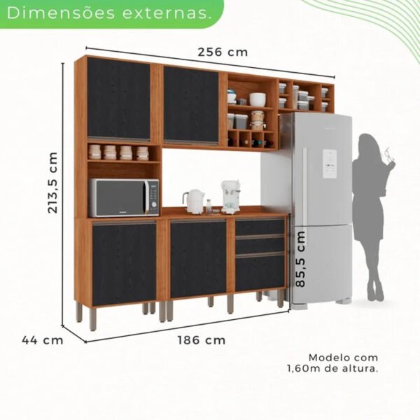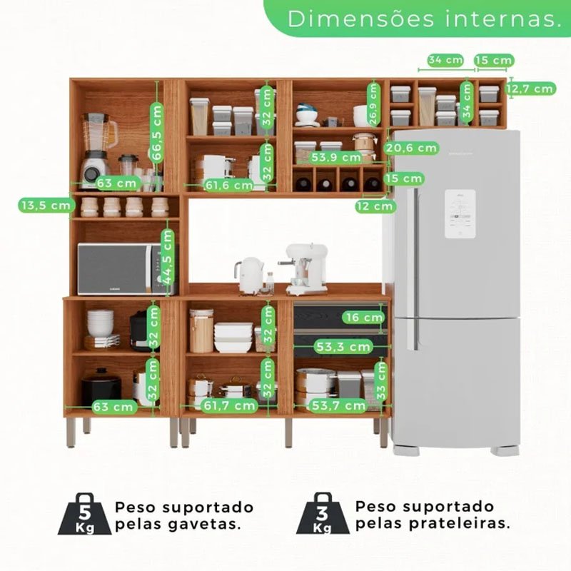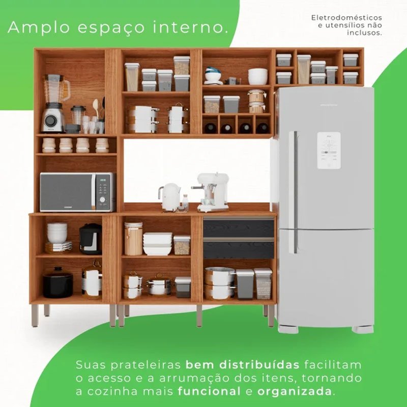 3{%%}Descrição{%%}Torre Quente Cozinha Pérola + Balcão 1.20m + Aéreo 1 Portas 1.20m + Armário de geladeira Pérola Cinamomo/Grafite Sallêto