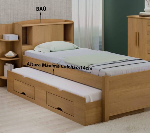 Cama Solteiro Milênio + Cama Auxiliar Solteiro 2 Gavetas Cinamamo D Doro