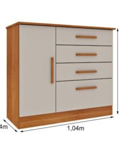 Cômoda Sapateira Chicago 4 Gavetas 1 Porta Tcil – Cinamomo/Off White