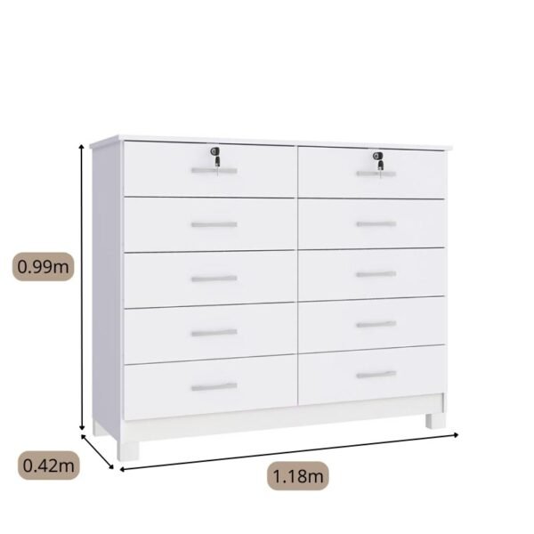 Cômoda Lucca Larg. 1.18m Branco 10 Gavetas C/Pés – San Marino