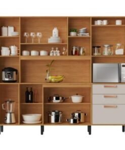 Armário Kit de Cozinha Antonella c/espelho 7 Portas 3 Gavetas – Cinamomo/Off White