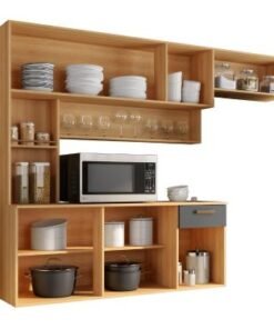 Armário Kit de Cozinha Núria 9 Portas 1 Gaveta – Freijo Ripado/Off white