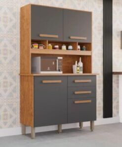 Armário Kit de Cozinha Sofia 4 Portas 2 Gavetas – Cinamomo/Grafite