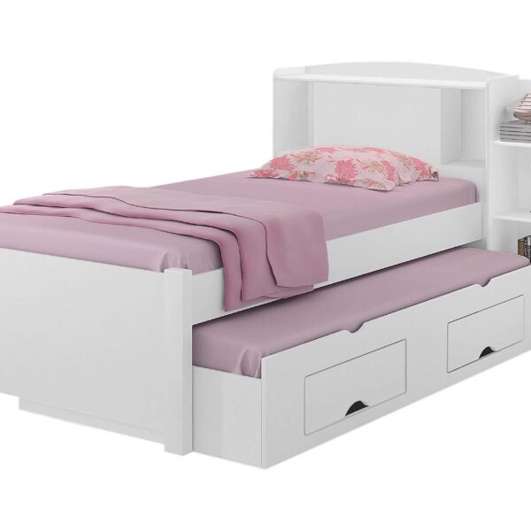 Roupeiro Merídian Branco 2 Portas + Cômoda Firenze Branco + Cama Solteiro Milênio Branca + Cama Auxiliar 2 Gavetas Branca – D Doro