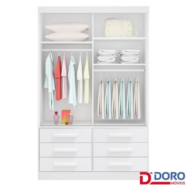 Roupeiro Solteiro Da Vinci Plus Branco 4 Portas 3 Gavetas 100% MDF Larg. 1.85m – D Doro