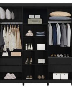 Guarda-Roupa Dubai Plus c/ espelho 3 Portas e 3 Gavetas – Preto