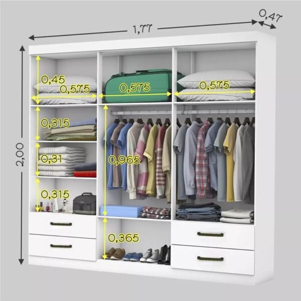 Roupeiro Casal Recife Branco 6 Portas C/Pés Larg. 1.80m – Sallêto