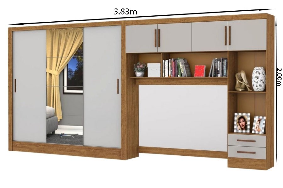 Modulado 4 Portas Cinamomo/Off + Roupeiro Dubai Cinamomo/Off 03 Portas C/ 1 Espelho – Carioca