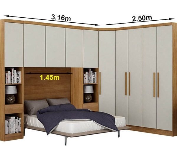 Modulado Cumaru/Fendi Fosco 1 Roupeiro Moderni 4 Pts + 2 Criado Rizon + 1 Canto Oblíquo Rizon + 1 Aéreo 3 portas Rizon – Novo Horizonte